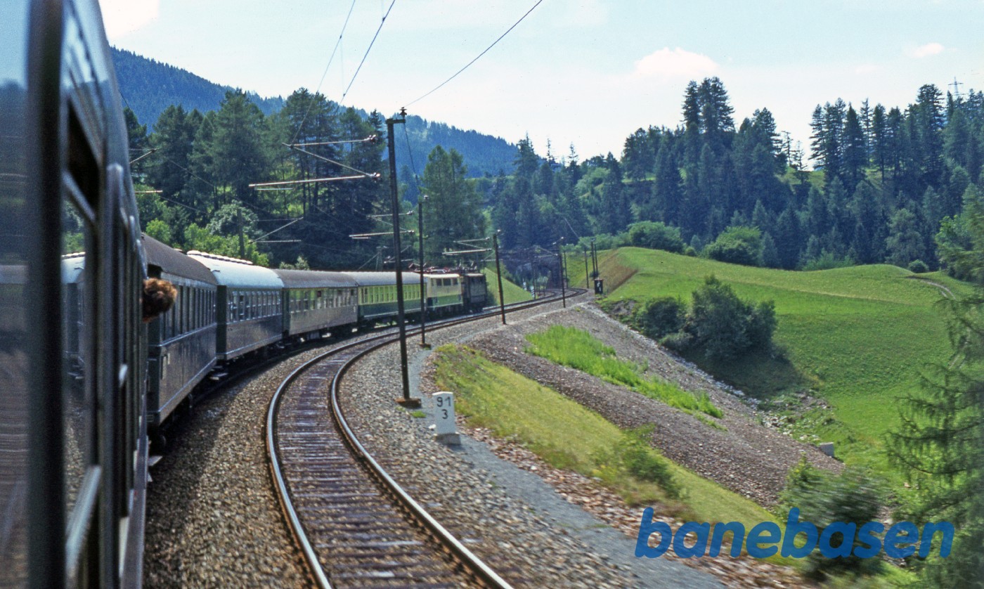 Motiv:Persontoget snor sig op ad bjerget fra Insbruck til Brenner passet