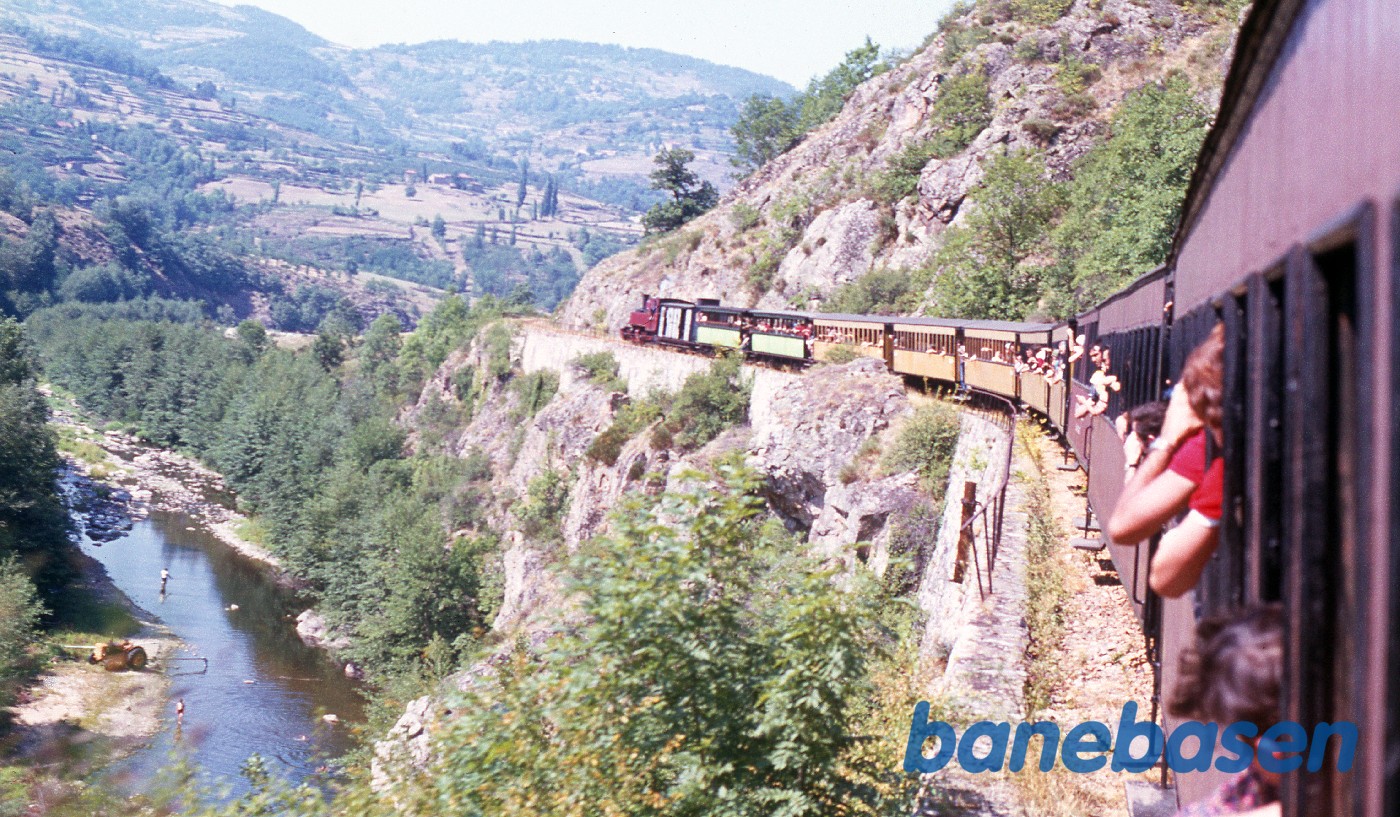 Damptoget på vej tilbage mod Tournon. Lørdagsfiskere nede i floden