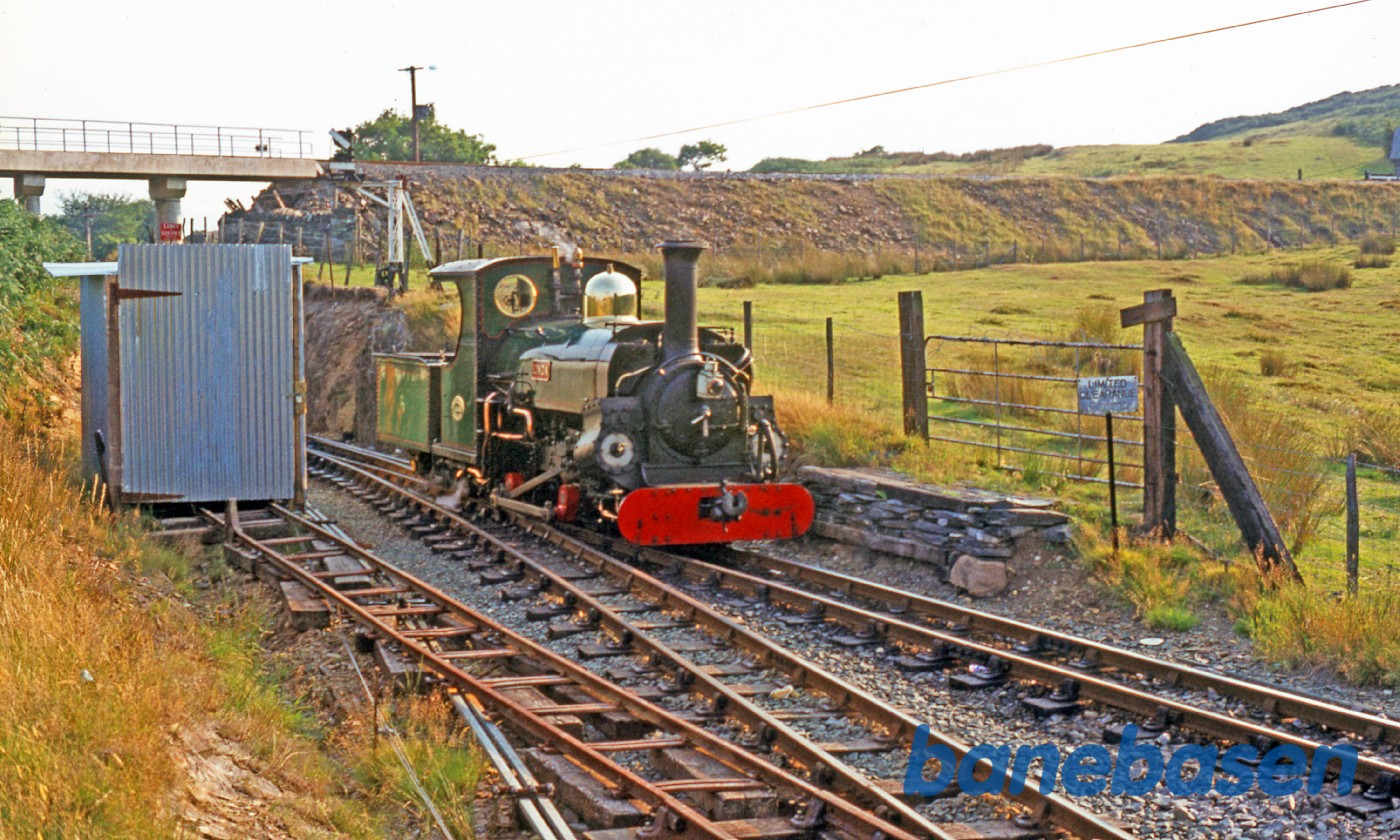 Motiv:Damplokomotivet løber om på endestationen. Banen er senere blevet genåbnet helt op til Blaenau Ffestiniog