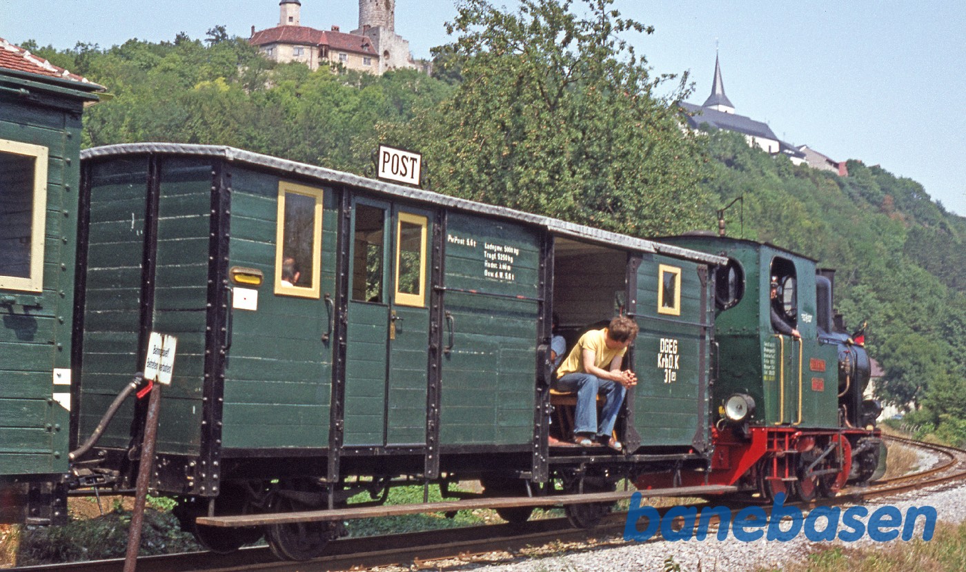 Damptoget på vej ud af stationen i retning mod Dörzbach