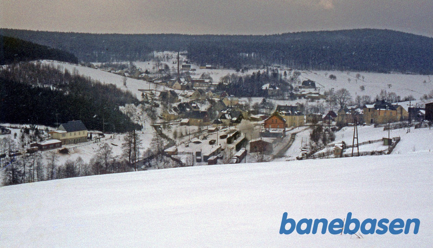 Motiv:Foto ned over Jöhstadt by med stationen i midten af billedet