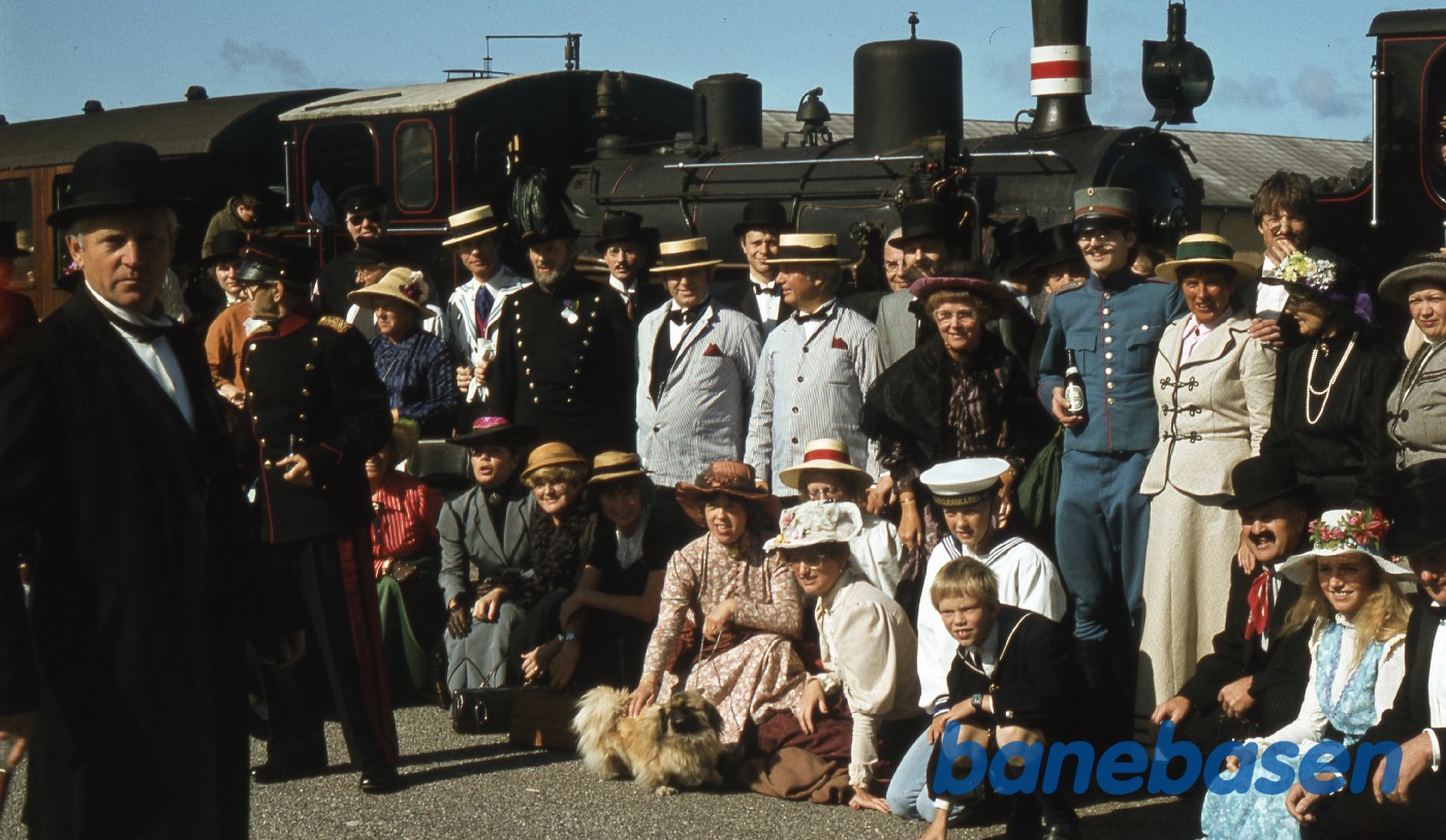 | Motiv: | De Glade 90'ere foran de 2 damplokomotiver i Gilleleje |