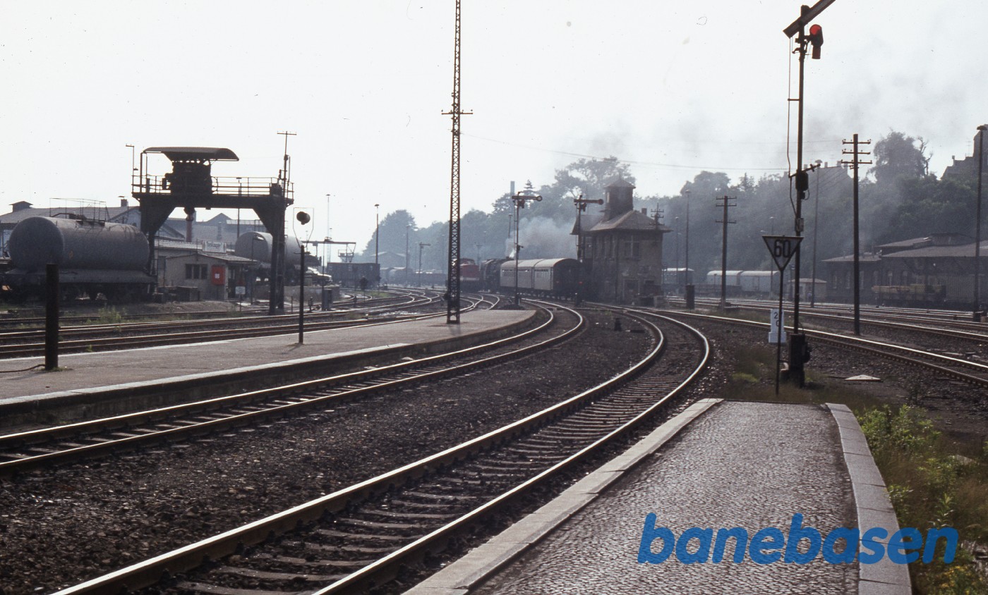 Motiv:Persontog med damplokomotiv på vej ud af stationen fredag eftermiddag ved 18-tiden