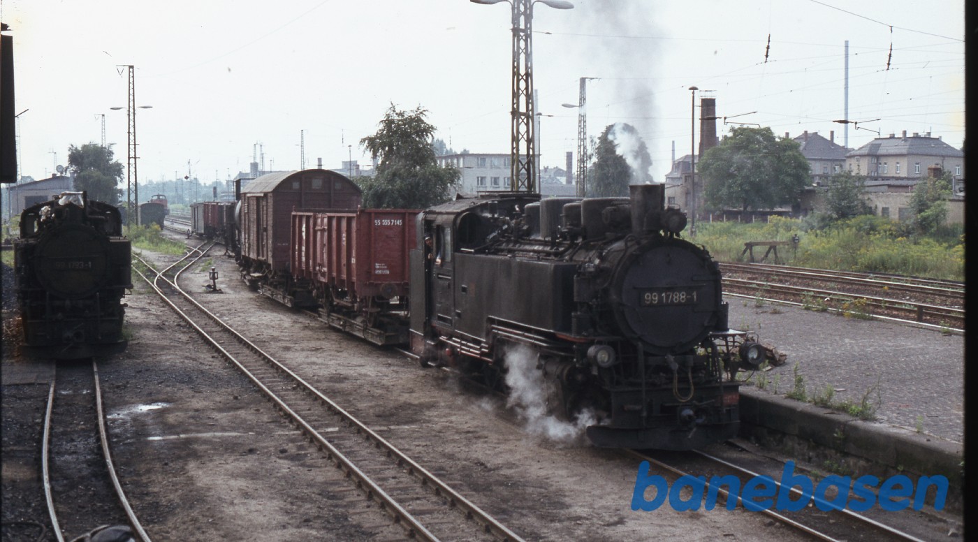 Motiv:Et godstog på stationen på vej mod Radeburg