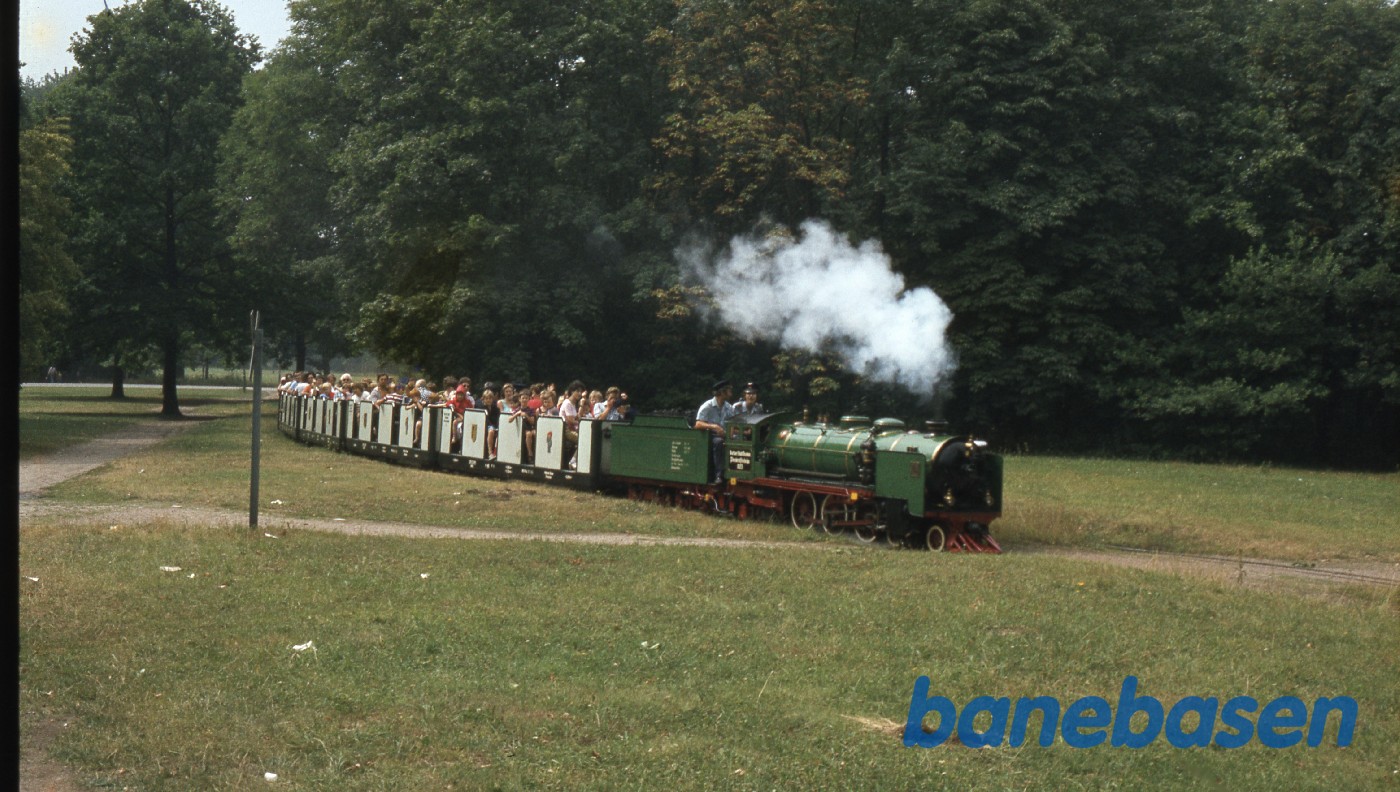 Motiv:Damptoget kører på parkbanen