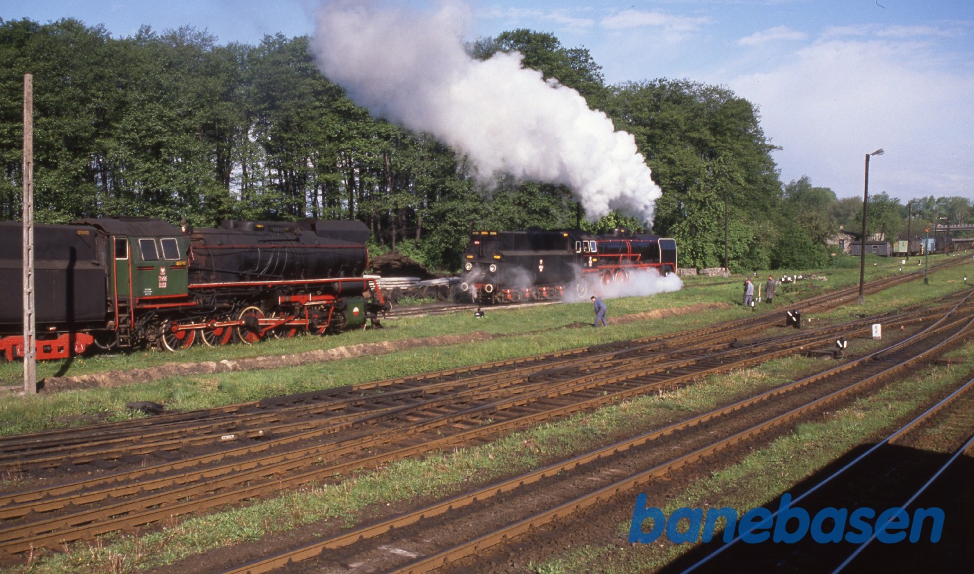 Motiv:2 damplokomotiver rangerer på maskindepotet