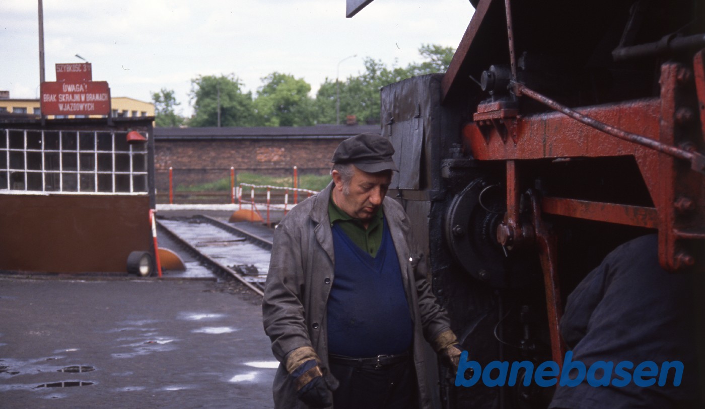Motiv:Fører og fyrbøder tjekker lokomotivet