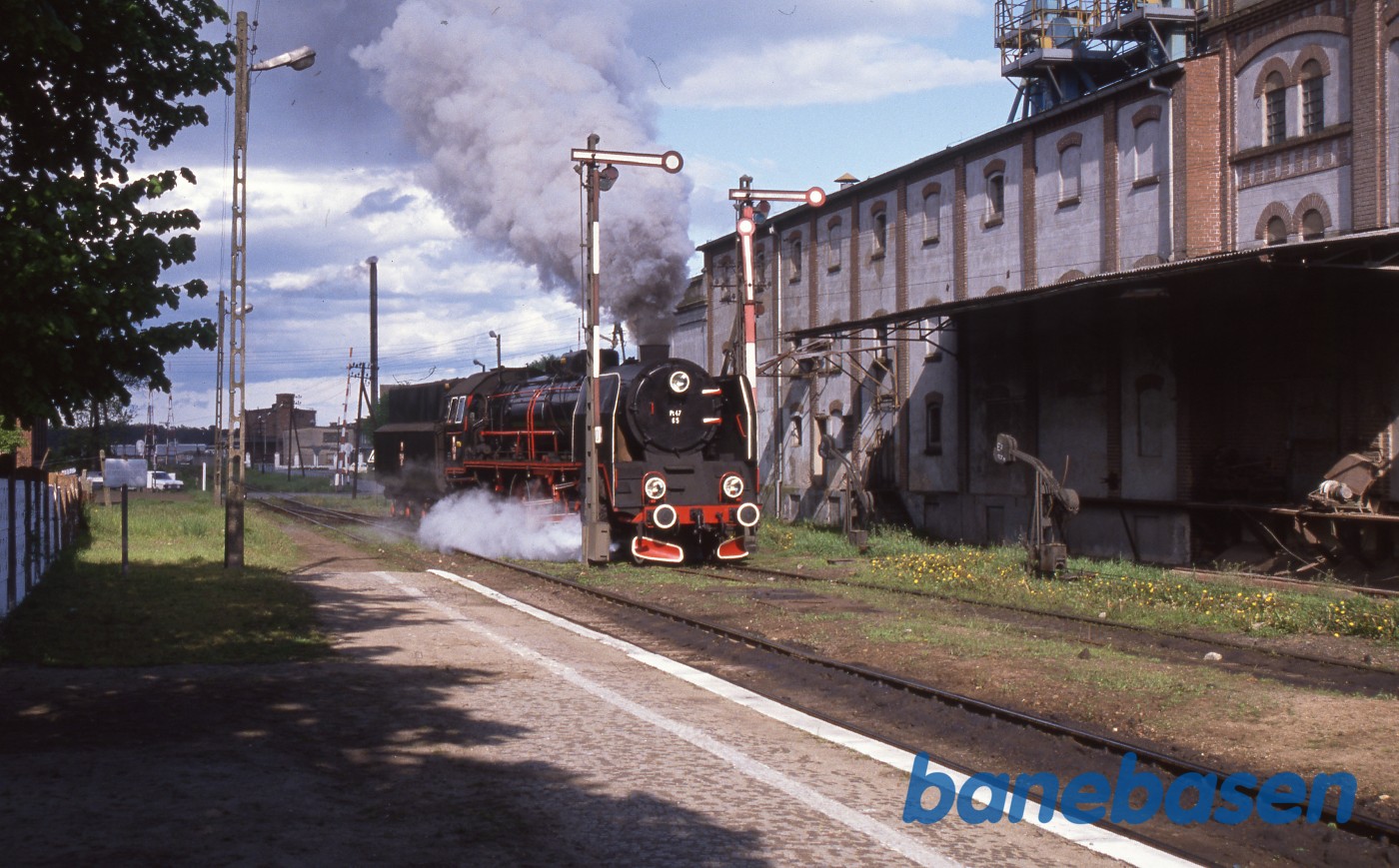 Motiv:Damplokomotiv rangerer på en station i nærheden af Wolsztyn