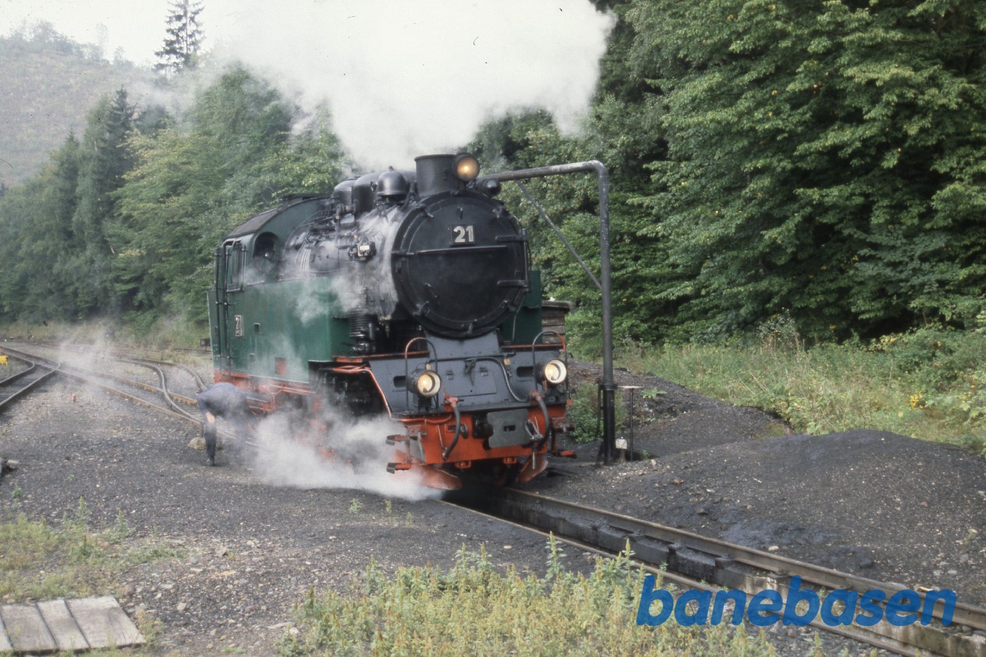 Motiv:Lokomotivet ude ved rensegraven, hvor det bliver tjekket af fyrbøderen