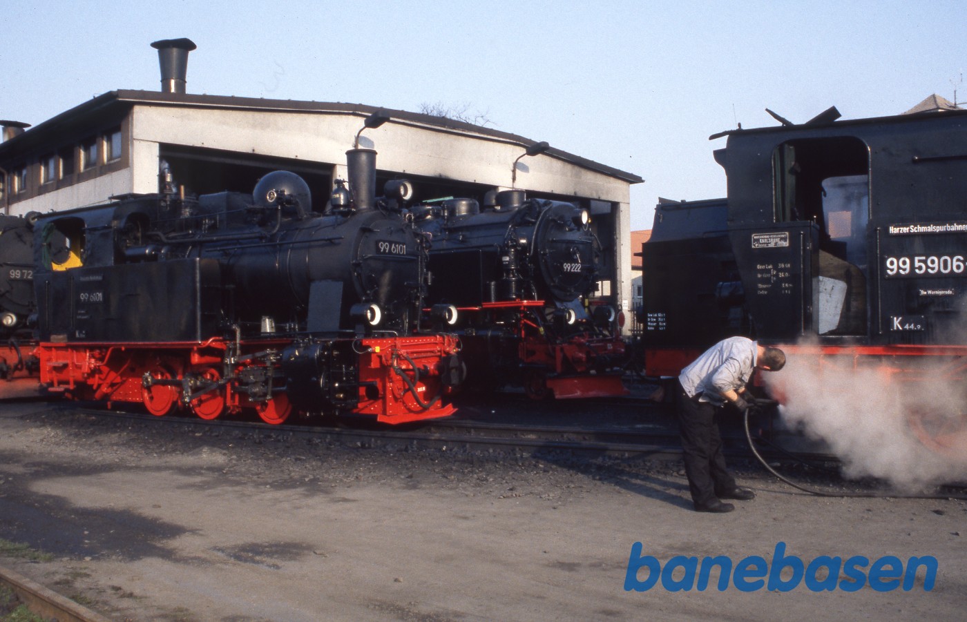 4 damplokomotiver på maskindepotet
