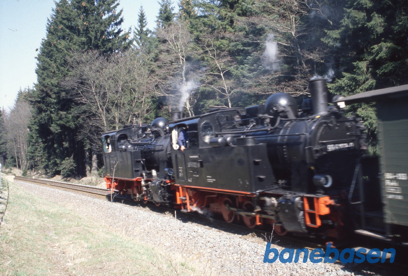 Persontog med 2 lokomotiverpå vej op til Brocken