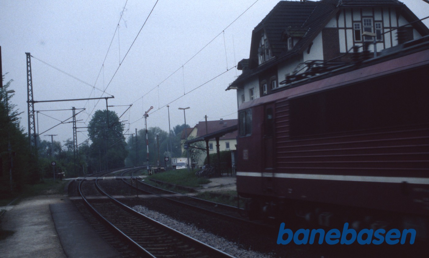 Motiv:Tog på vej gennem stationen i retning mod Saalfeld