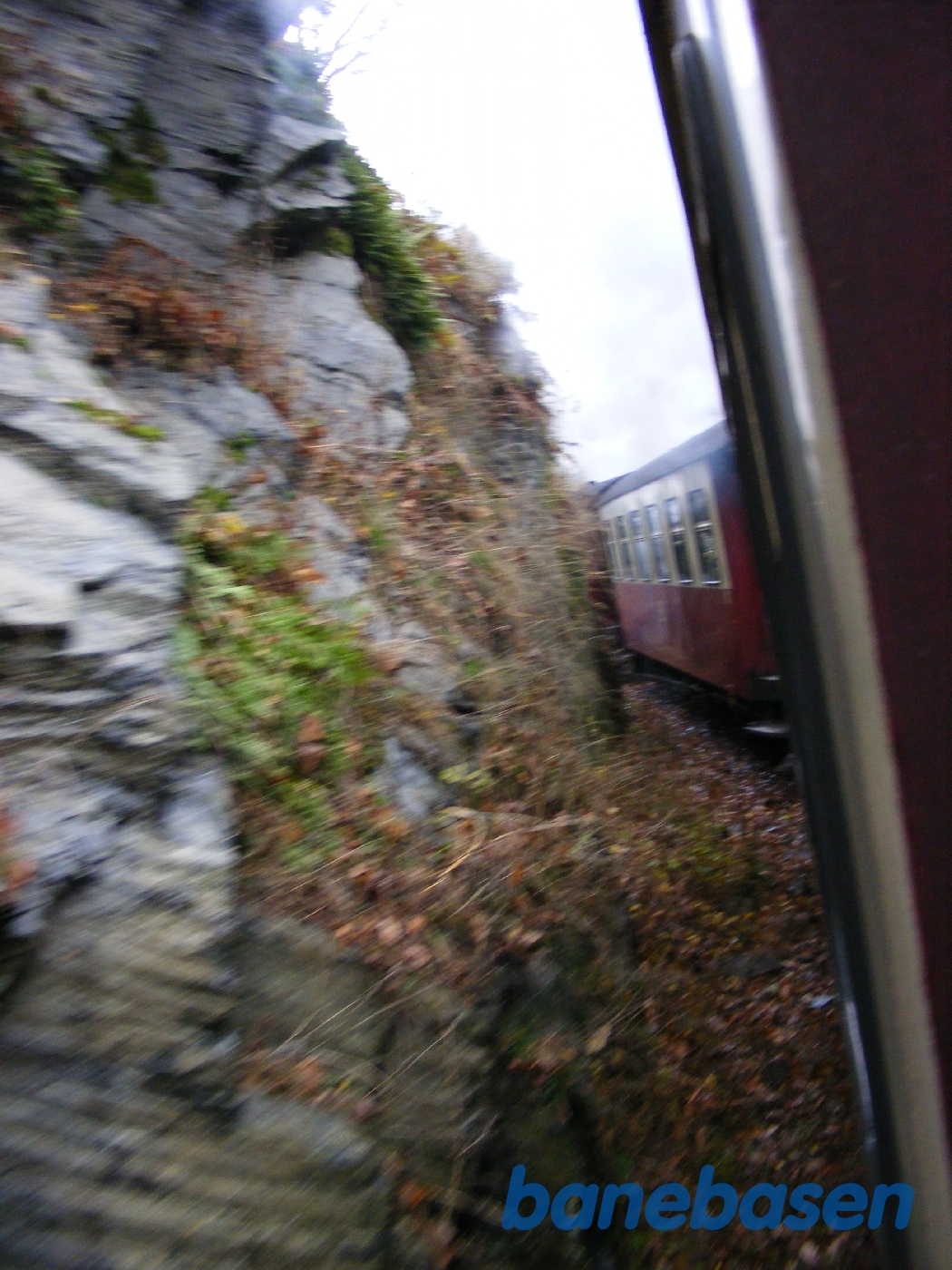 Damplokomotiv 99 5906-5 med tog. Bjergsiderne mellem Alexibad og Harzgerode