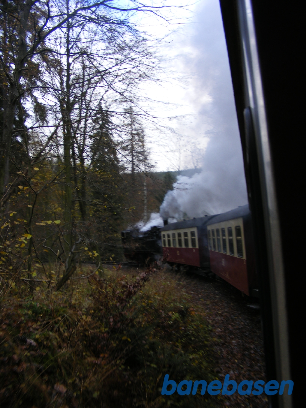 Damplokomotiv 99 5906-5 med tog. Bjergsiderne mellem Alexibad og Harzgerode