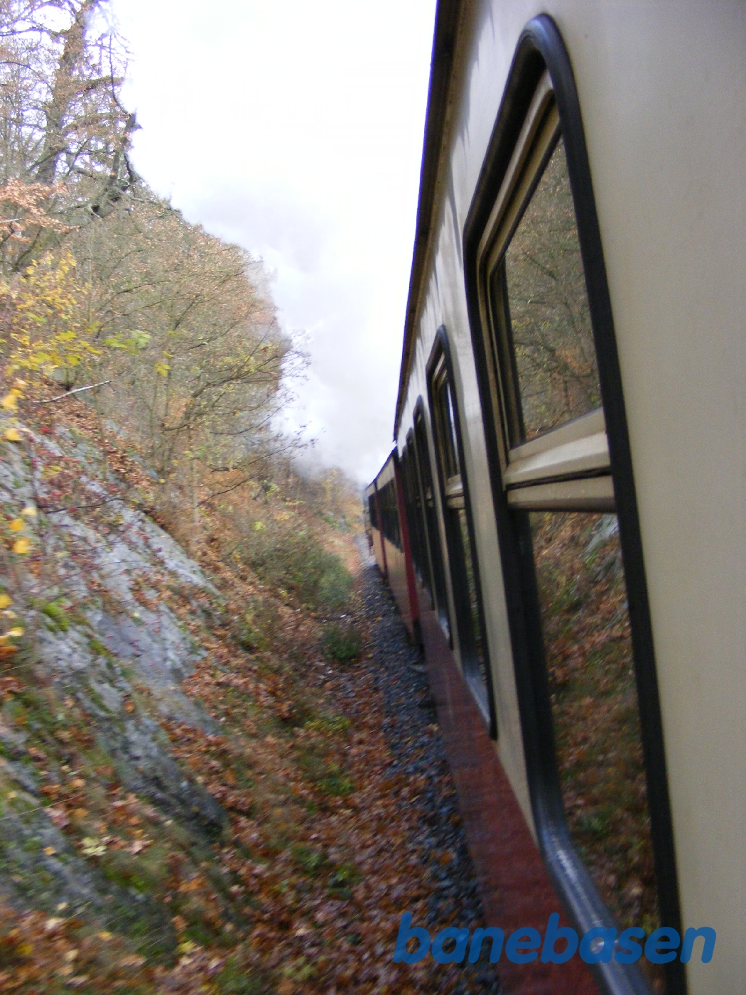 Damplokomotiv 99 5906-5 med tog. Bjergsiderne mellem Alexibad og Harzgerode