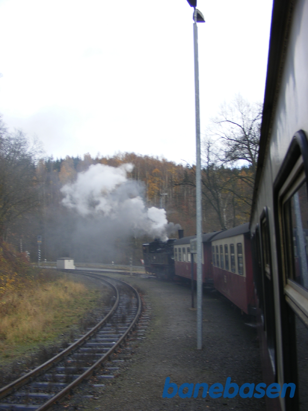 Damplokomotiv 99 5906-5 med tog. Bjergsiderne mellem Alexibad og Harzgerode