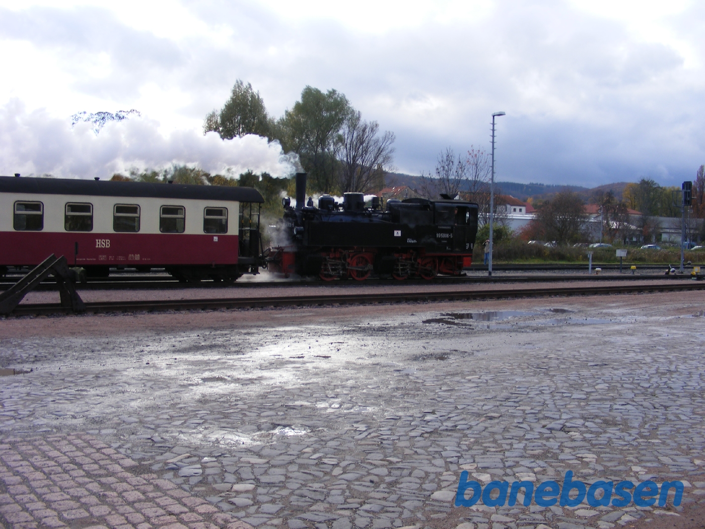 Damplokomotiv 99 5906-5 på Alexibad stationmed tog på Gernrode station