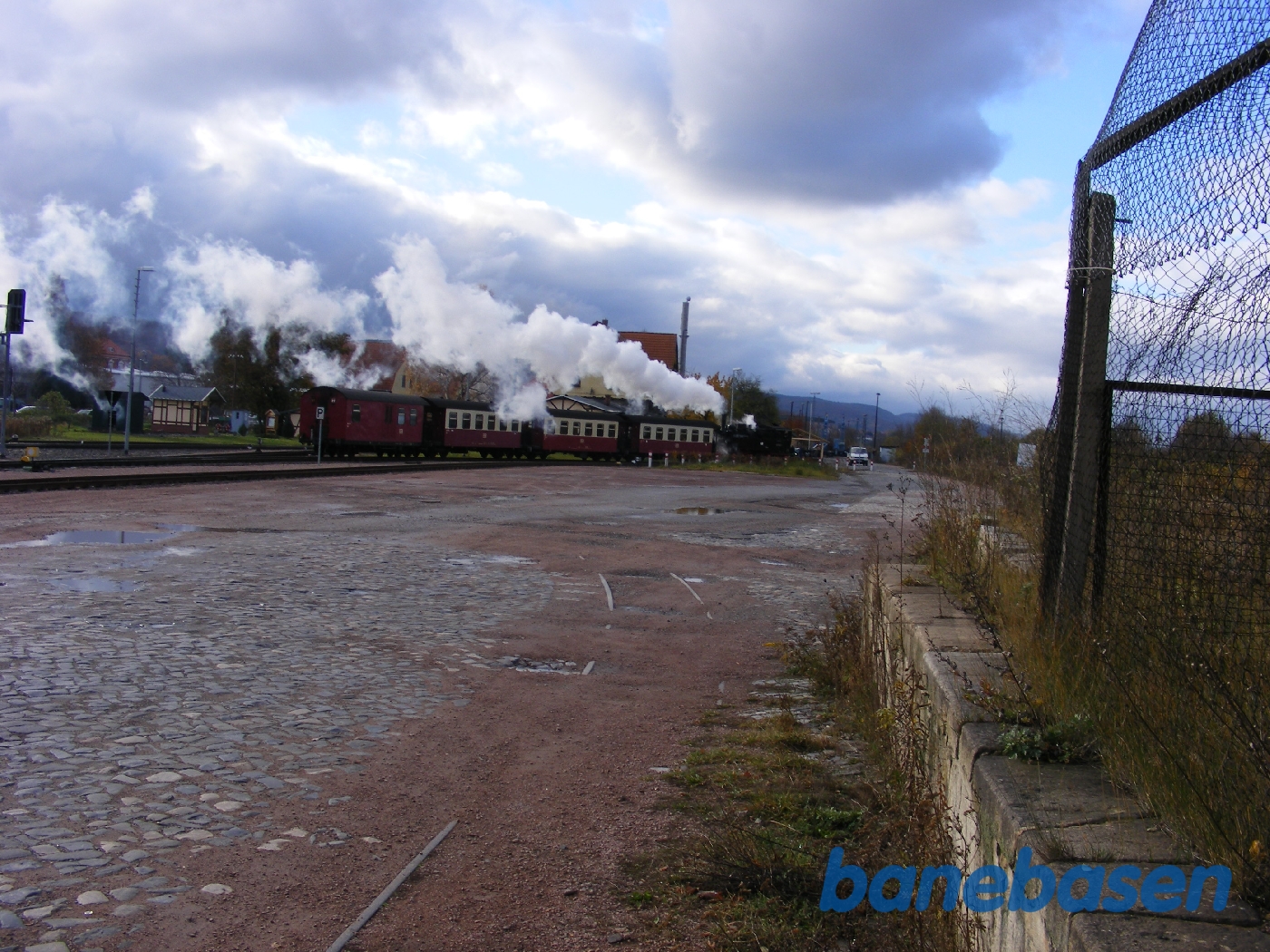 Motiv:Damplokomotiv 99 5906-5 på Alexibad stationmed tog på Gernrode station