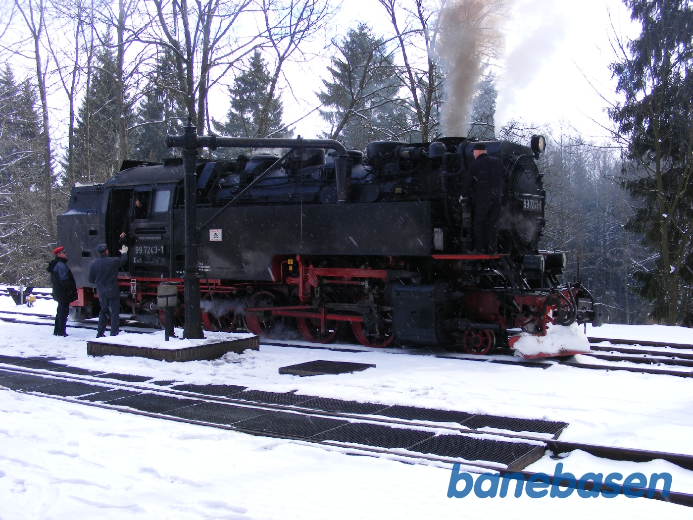 Damplokomotiv 99 7243-1. Vandtagning på Brocken station