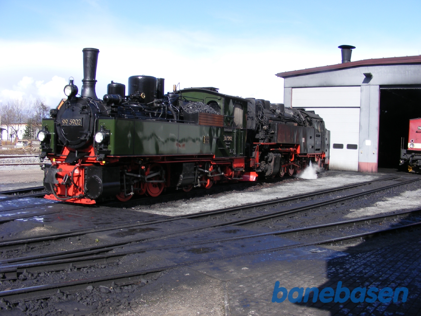 Motiv:Damplokomotiv 99 5902 ved remisen i Wernigerode