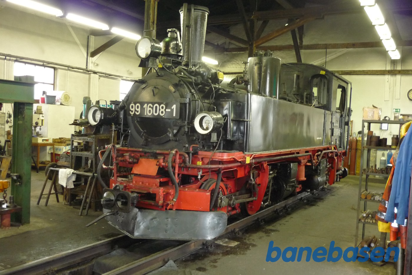 Motiv:Damplokomotiv 99 1608-1 i værkstedet