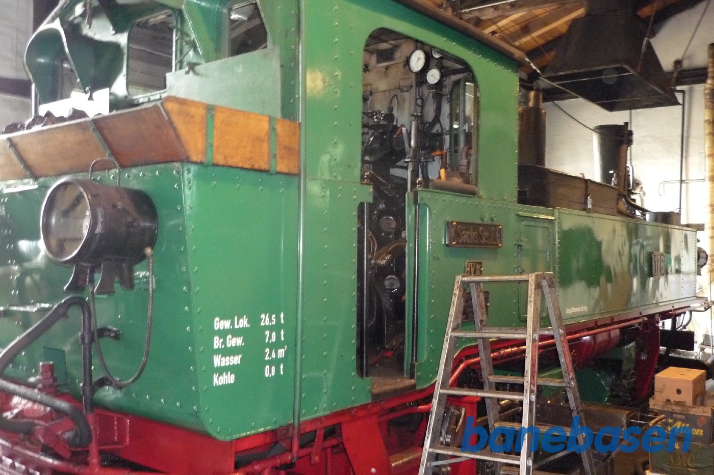 Radeburg. Damplokomotiv. Meyertypen i Sachsist bemaling