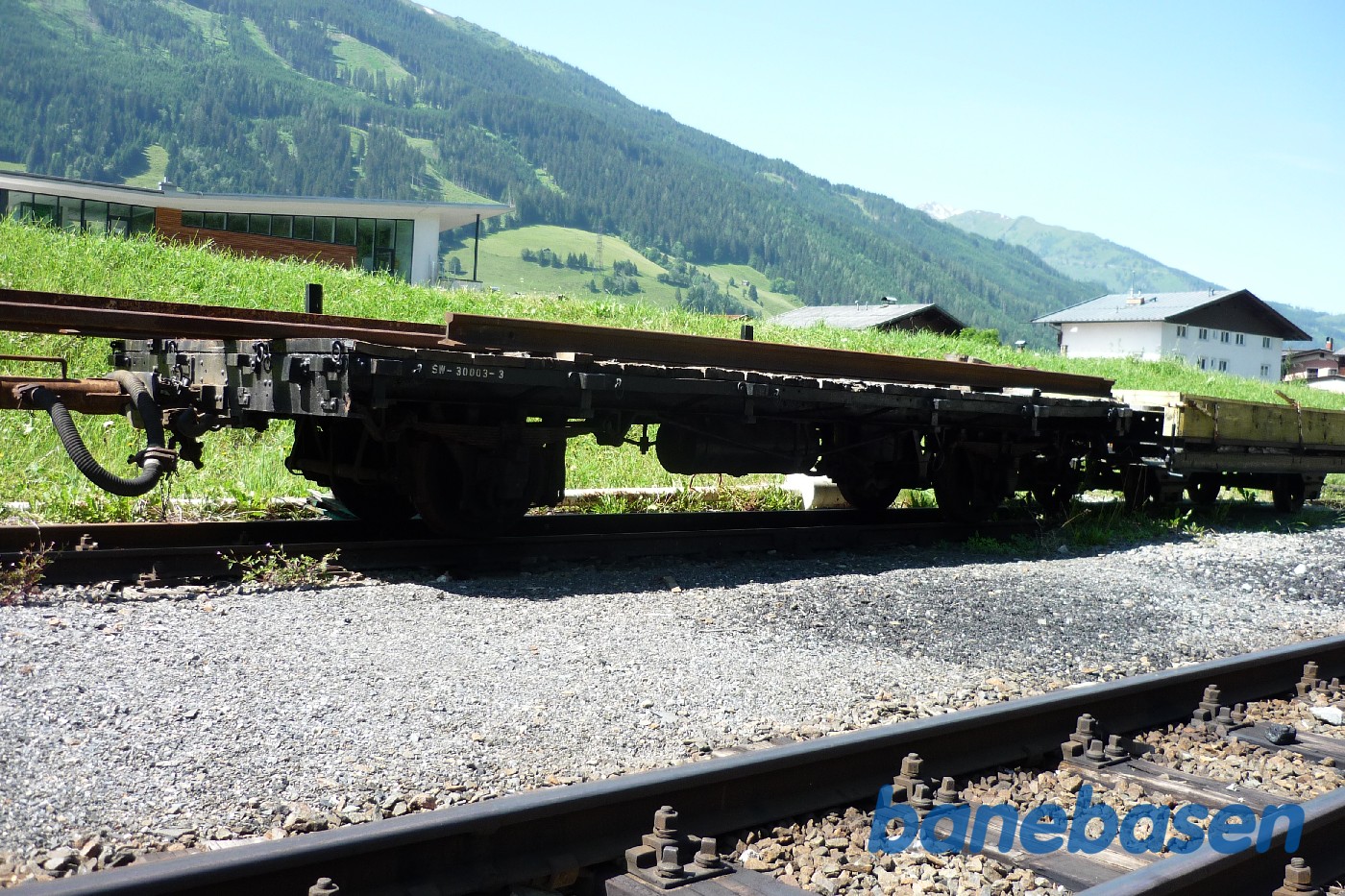 Pinzgauerbahn Krimmlbahn. Åben godsvogn med skinner