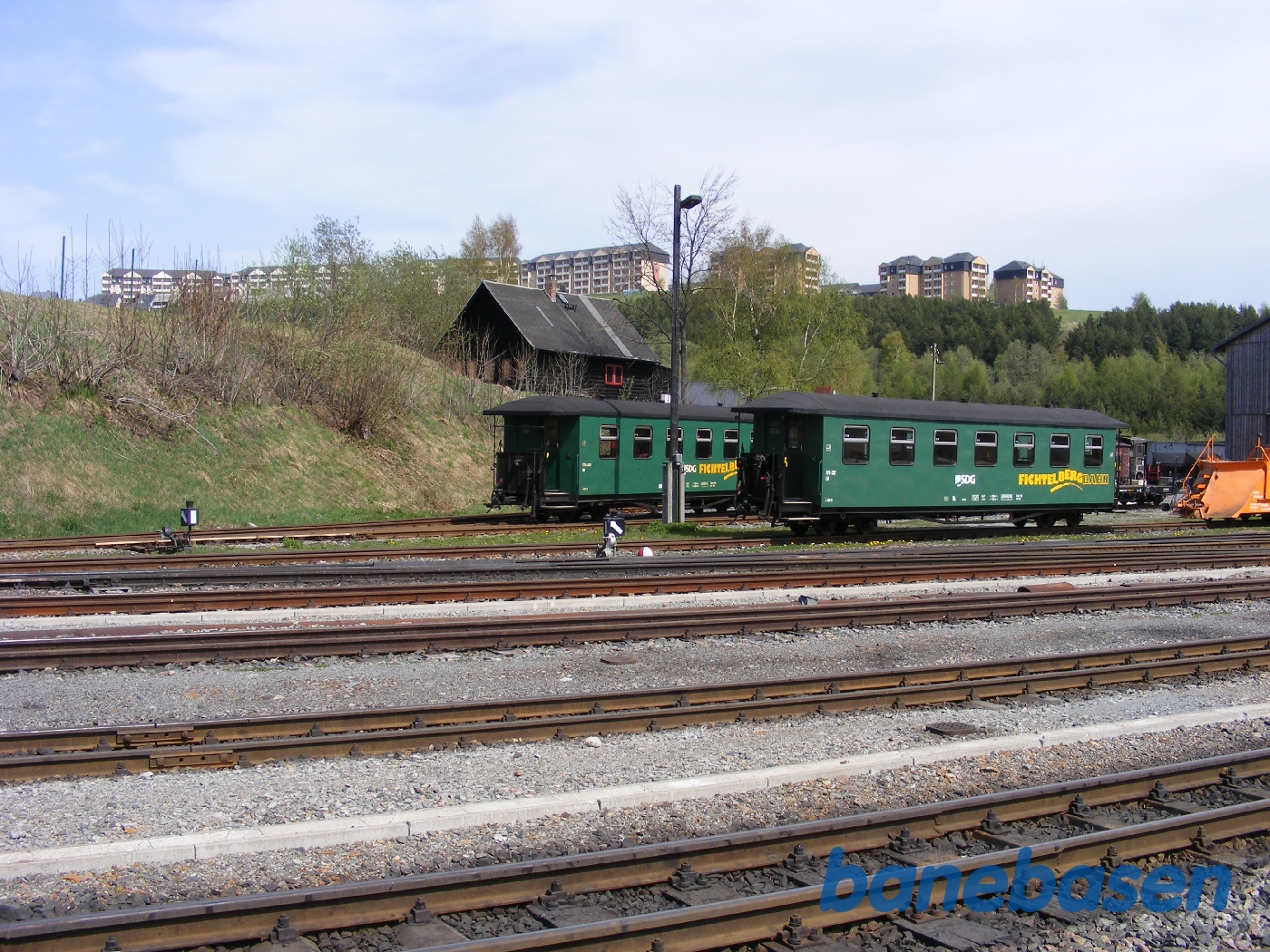Fichelbergbahn. Oberwiesenthal station. Vogne ved remisen
