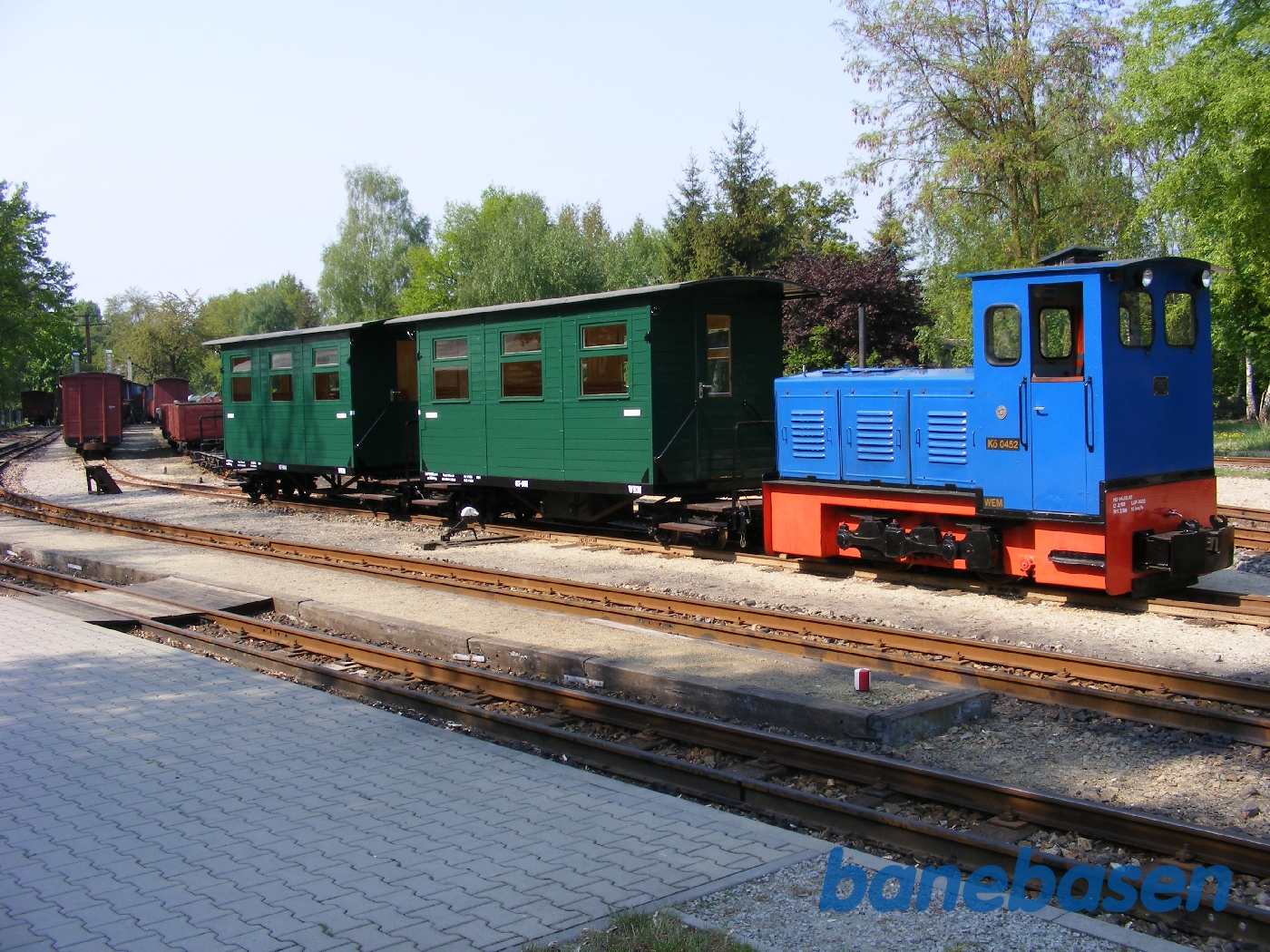 Motiv:Waldeisenbahn Muskau .Weisswasser.Motorlokomotiv Kö 0452 med passagervogne