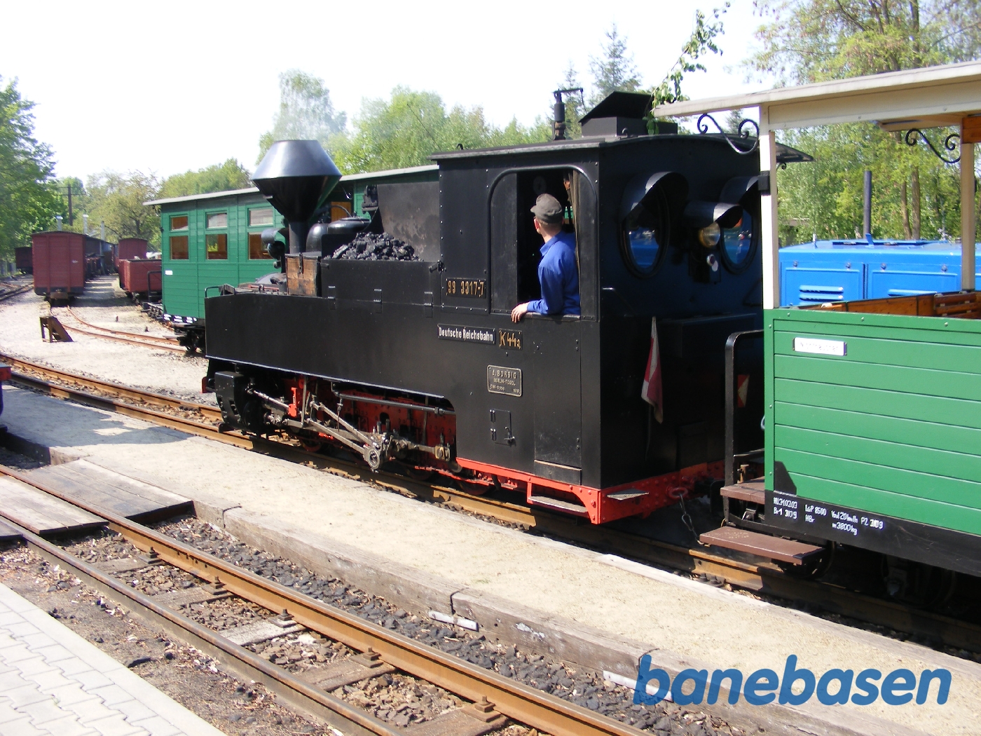 Waldeisenbahn Muskau .Weisswasser station. Damplokomotiv med tog .