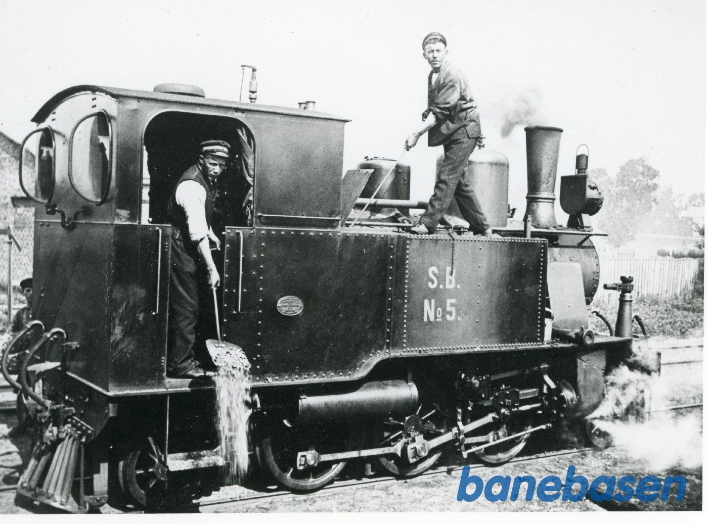Smalsporet damplokomotiv SB 5. Nr. 5 var det eneste smalsporede lokomotiv der havde S.B. på siden, de øvrige havde FSJ