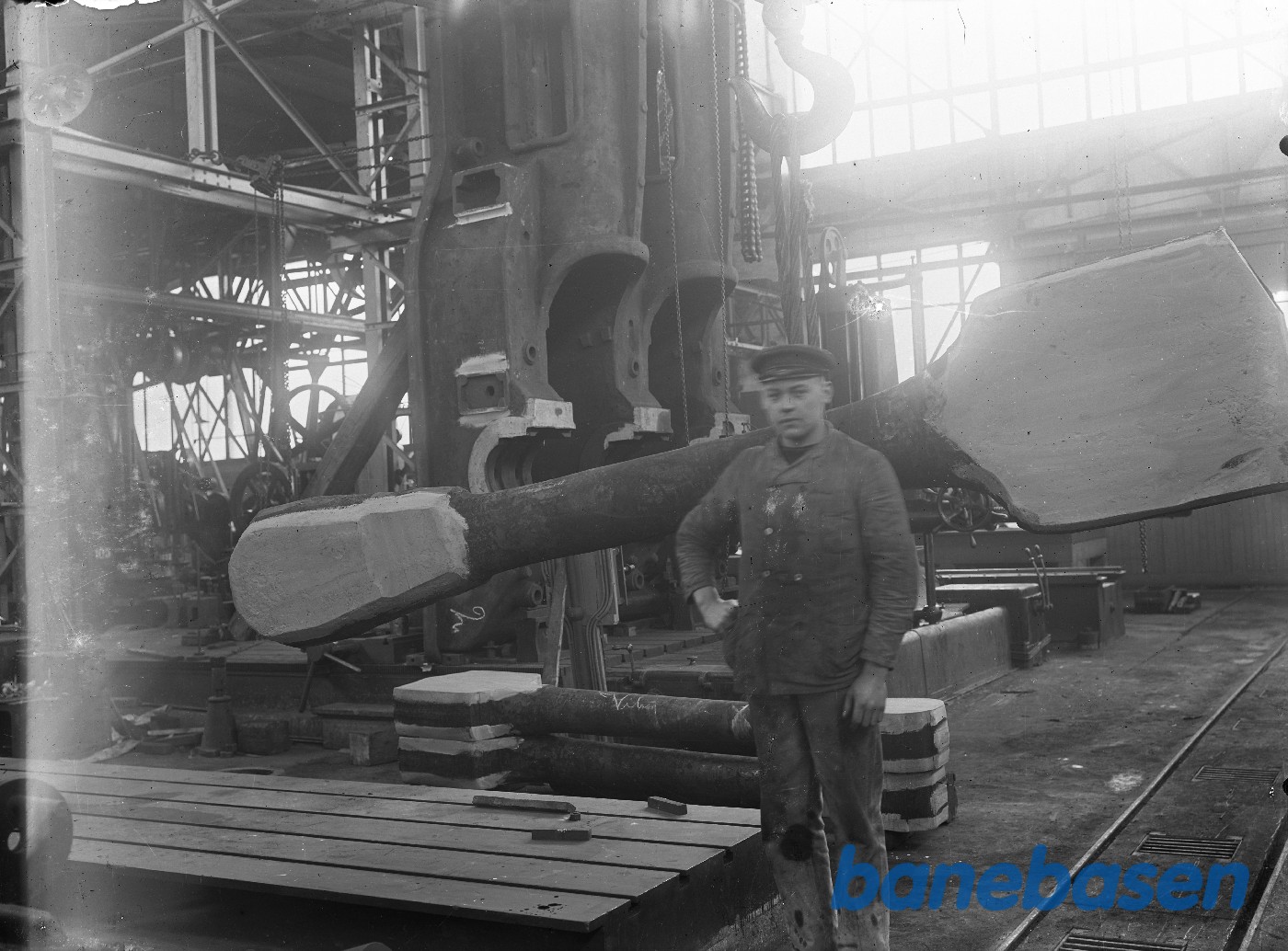 | Motiv: | Stor træform i arbejde til plejlstang |