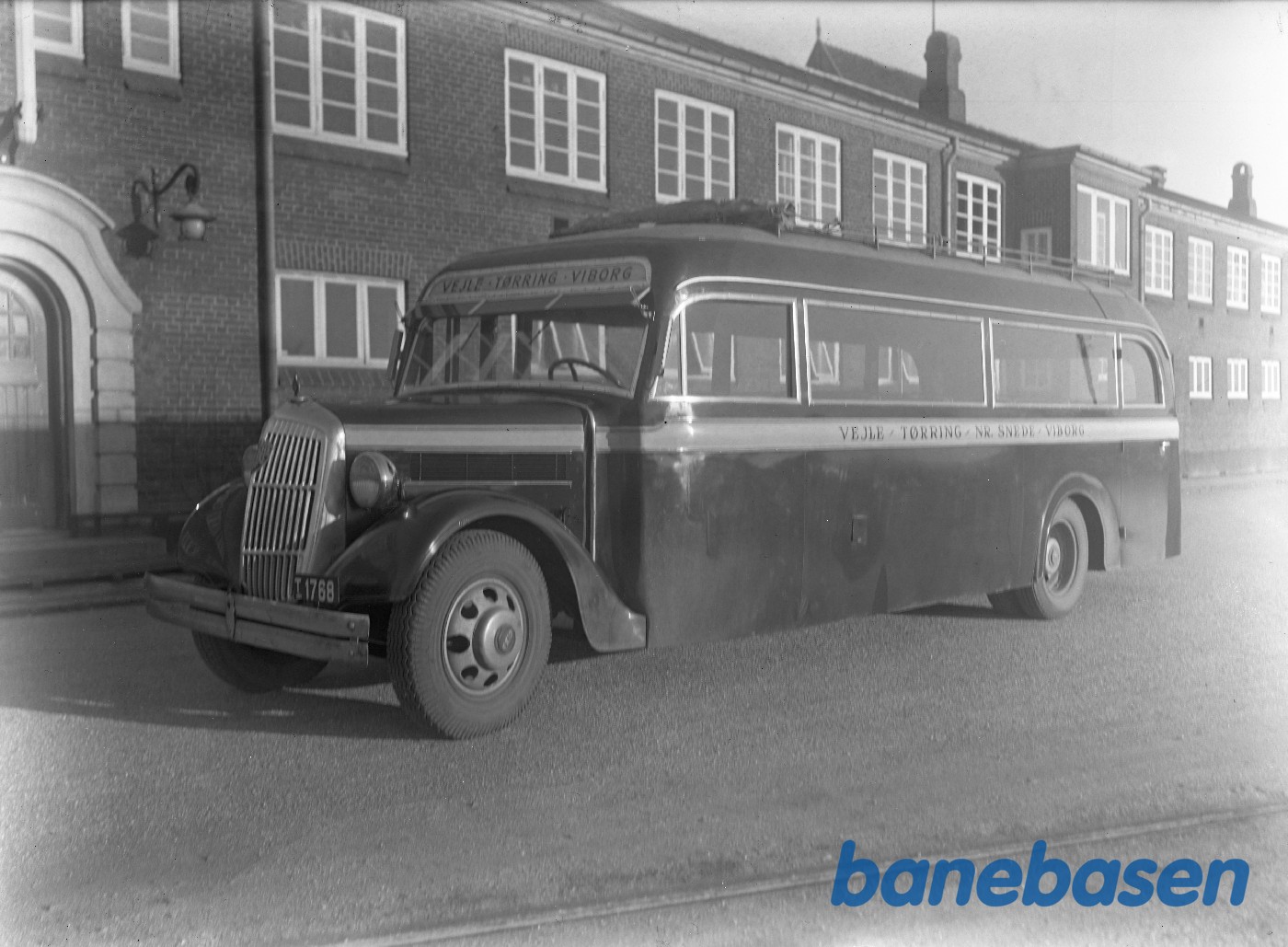 | Motiv: | Vejle-Tørring-Viborg rutebil foran administrationsbygningen |