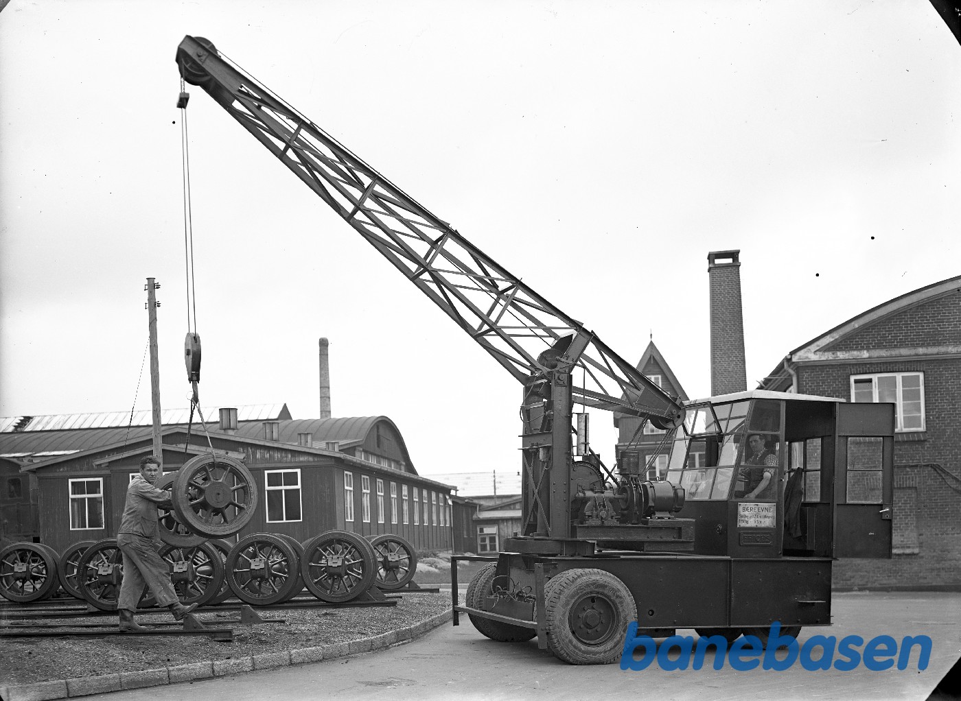 | Motiv: | Kranen flytter forløberhjul til damplokomotiv |
