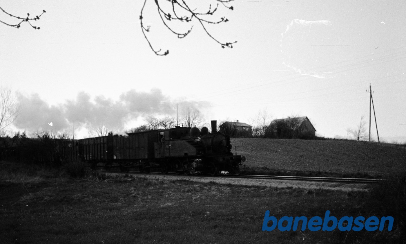 Motiv:Damplokomotiv nr. 1 med godstog til Odense, kort efter Langesø