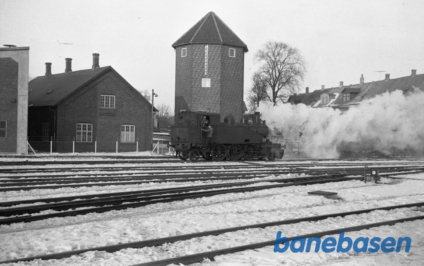 | Motiv: | Damplokomotiv nr. 14 rangerer ved remisen |