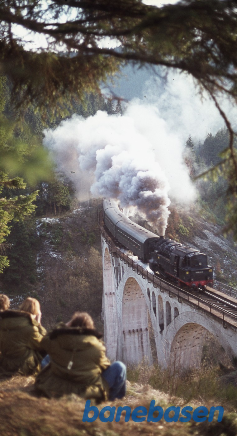 Motiv:Persontog på vej over broen ved Lauscha