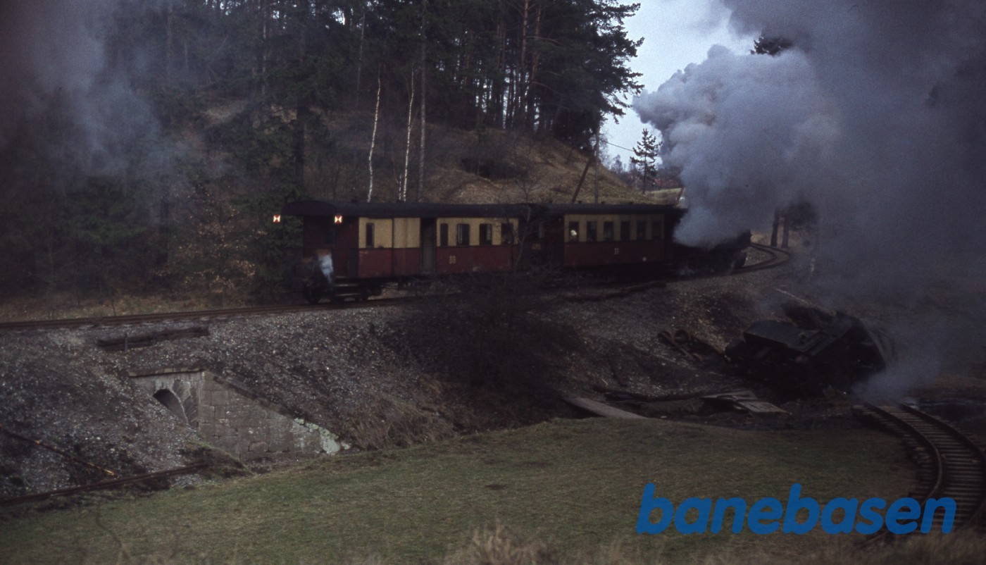 Yderligere beskrivelse:Under rangering i Harzgerode, kommer man for tæt på 3% faldstrækningen, hvorefter lokomotivet alene ikke kan holde vognene