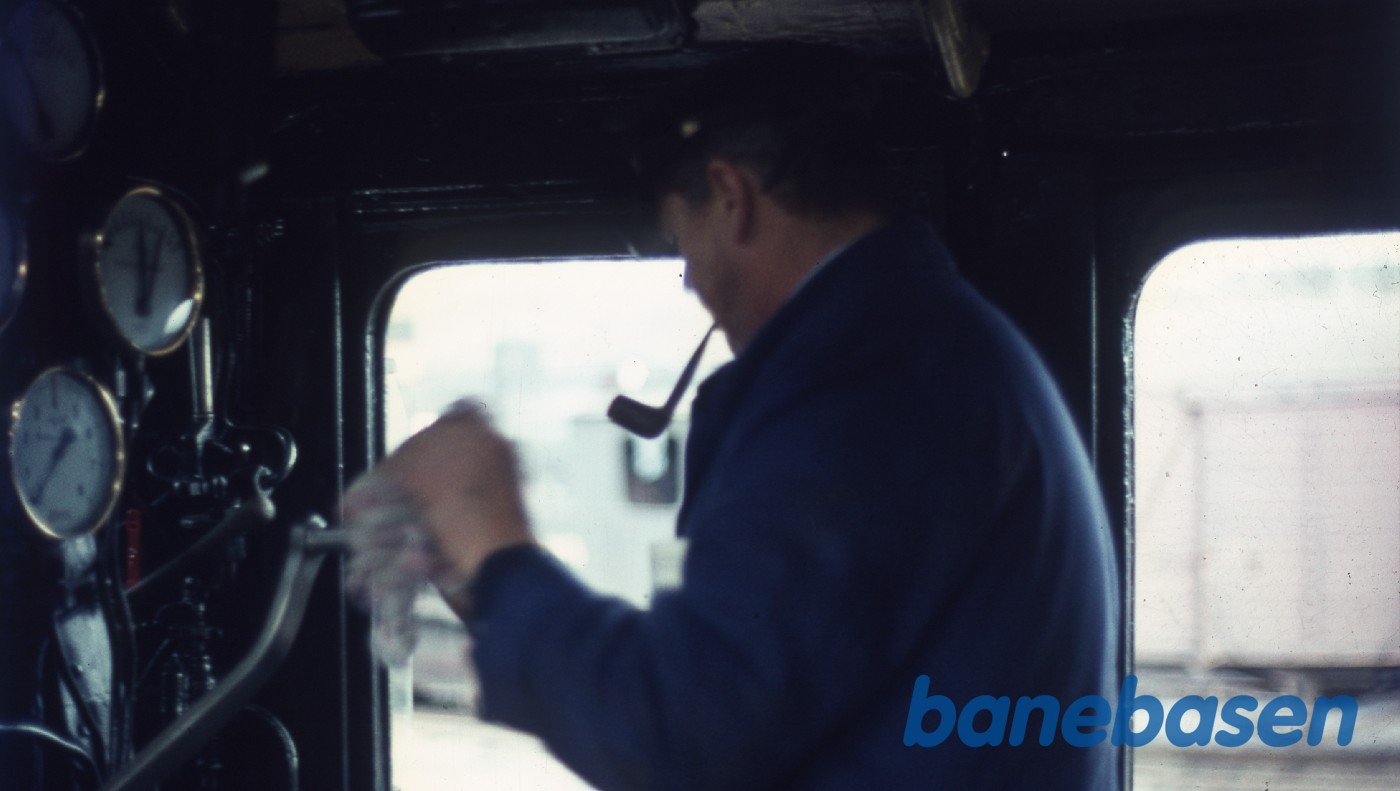 Motiv:Lokomotivføreren åbner for dampen på damplokomotivet