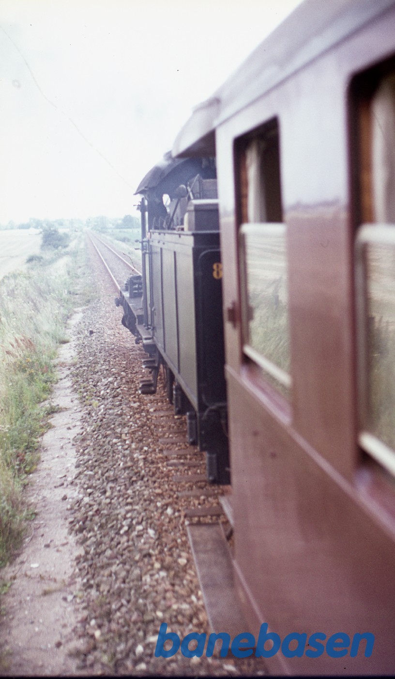 Motiv:Udflugtstog med damp. Udsigt fra togvinduet fremad