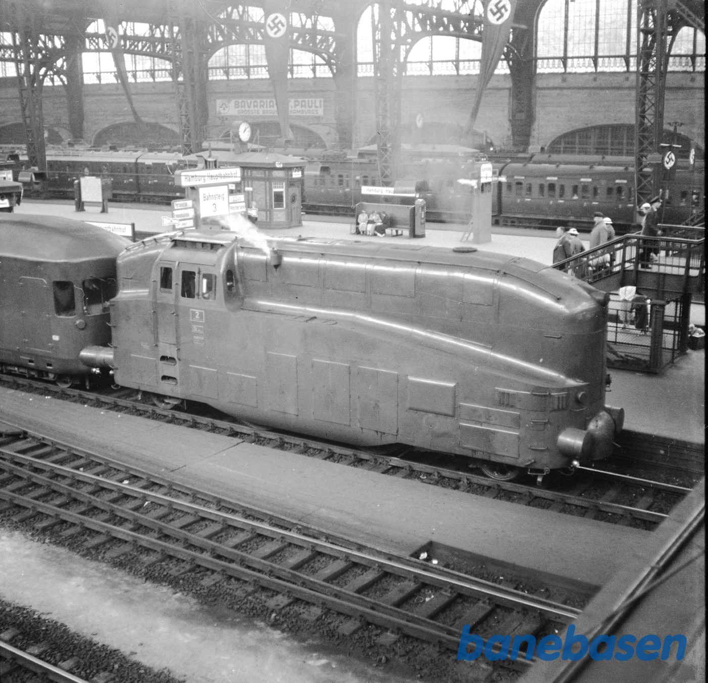 Motiv:Strømlinjet damplokomotiv LBE 2 holder på Hamburg Haufbahnhof