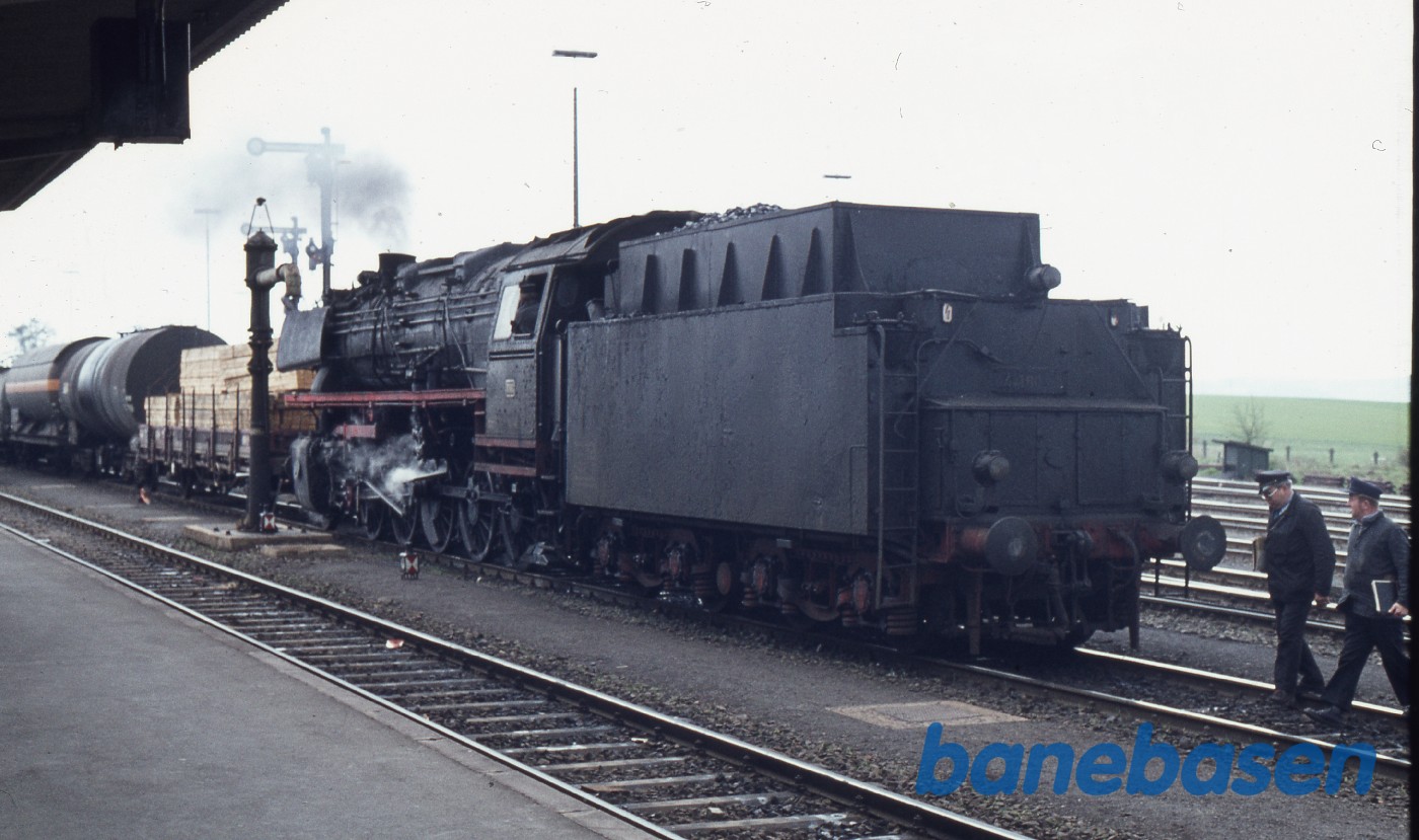 Herzberg, godstoget holder i sidesporet. Fører og fyrbøder på vej til maskinen