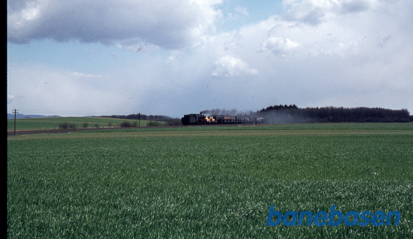 Udenfor Herzberg, godstoget på vej henover de grønne marker