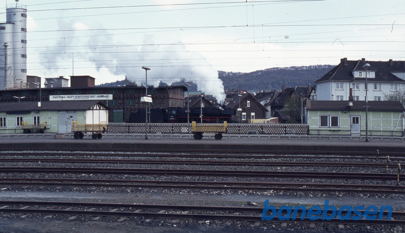 Motiv:Damplokomotivt holder over bag pakhuset