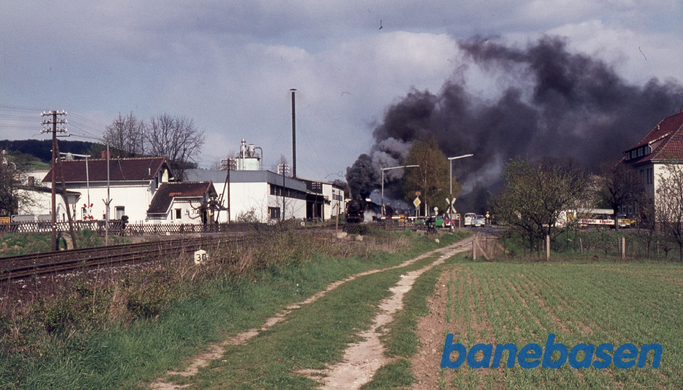 Ottbergen, godstog med 2 damplokomotiver på vej ud af stationen