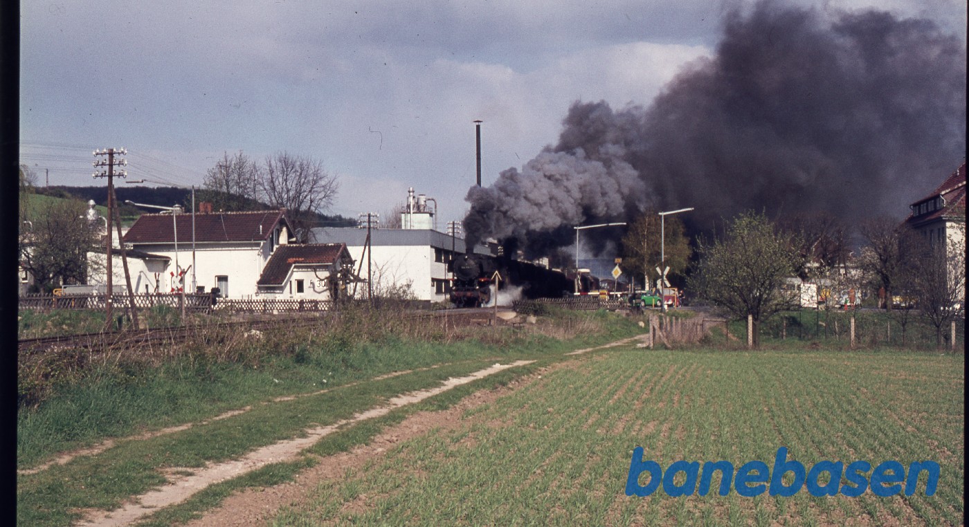 Ottbergen, godstog med 2 damplokomotiver på vej ud af stationen