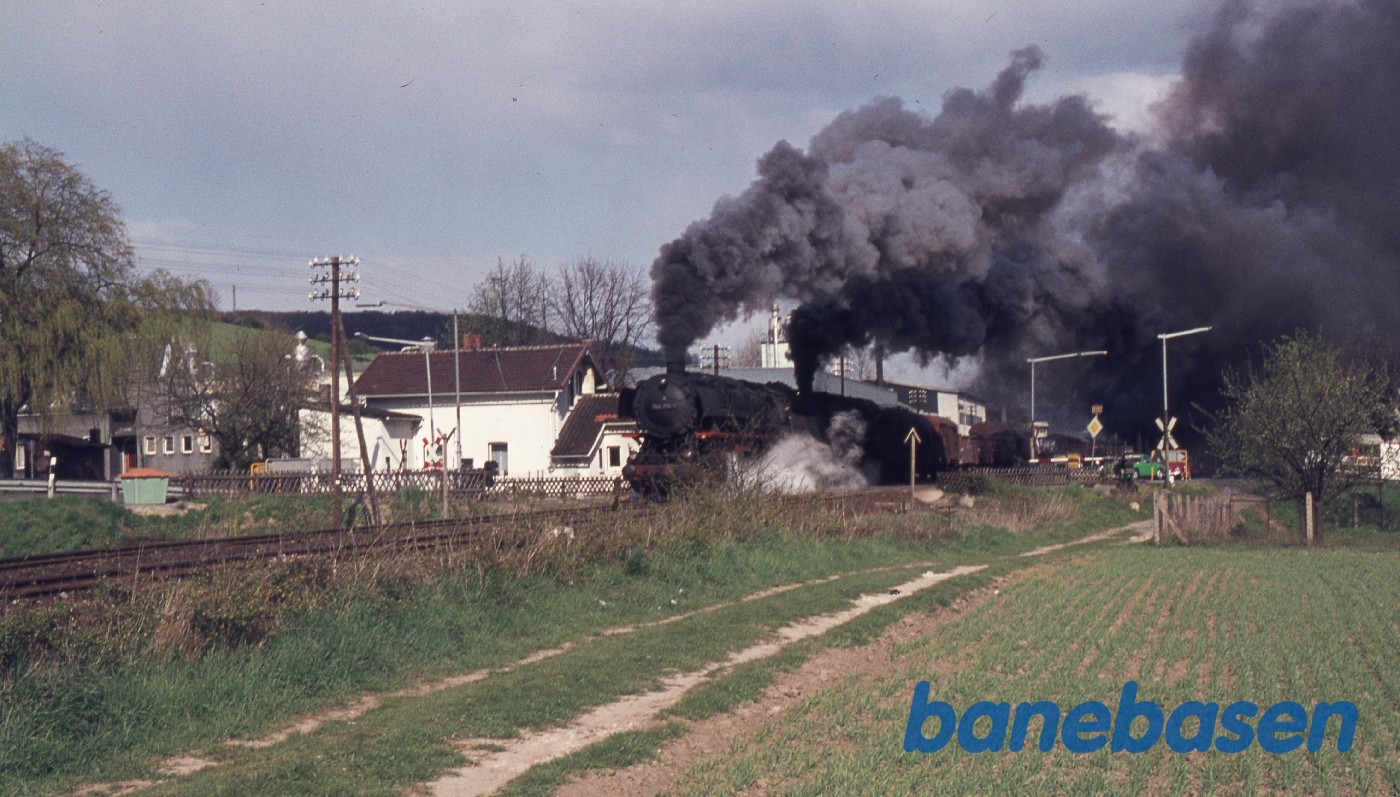 Ottbergen, godstog med 2 damplokomotiver på vej ud af stationen