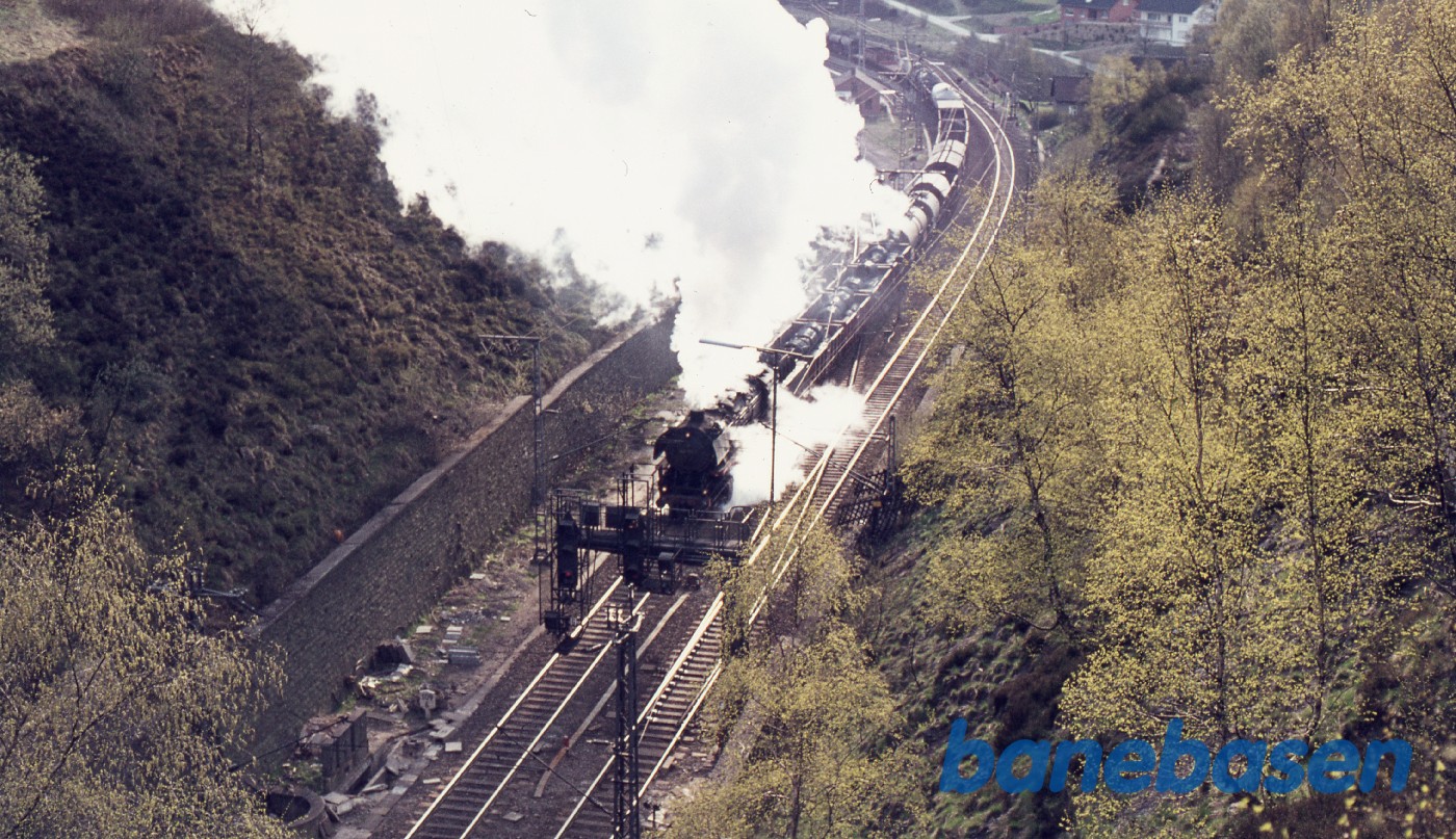 Altebeken, den store udgravning udenfor stationen. Damptog på vej ud af stationen
