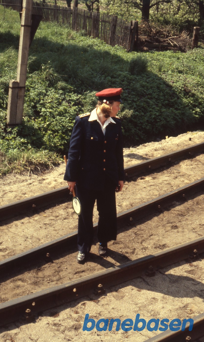 Stationsbestyreren kigger på toget der kører ud af stationen