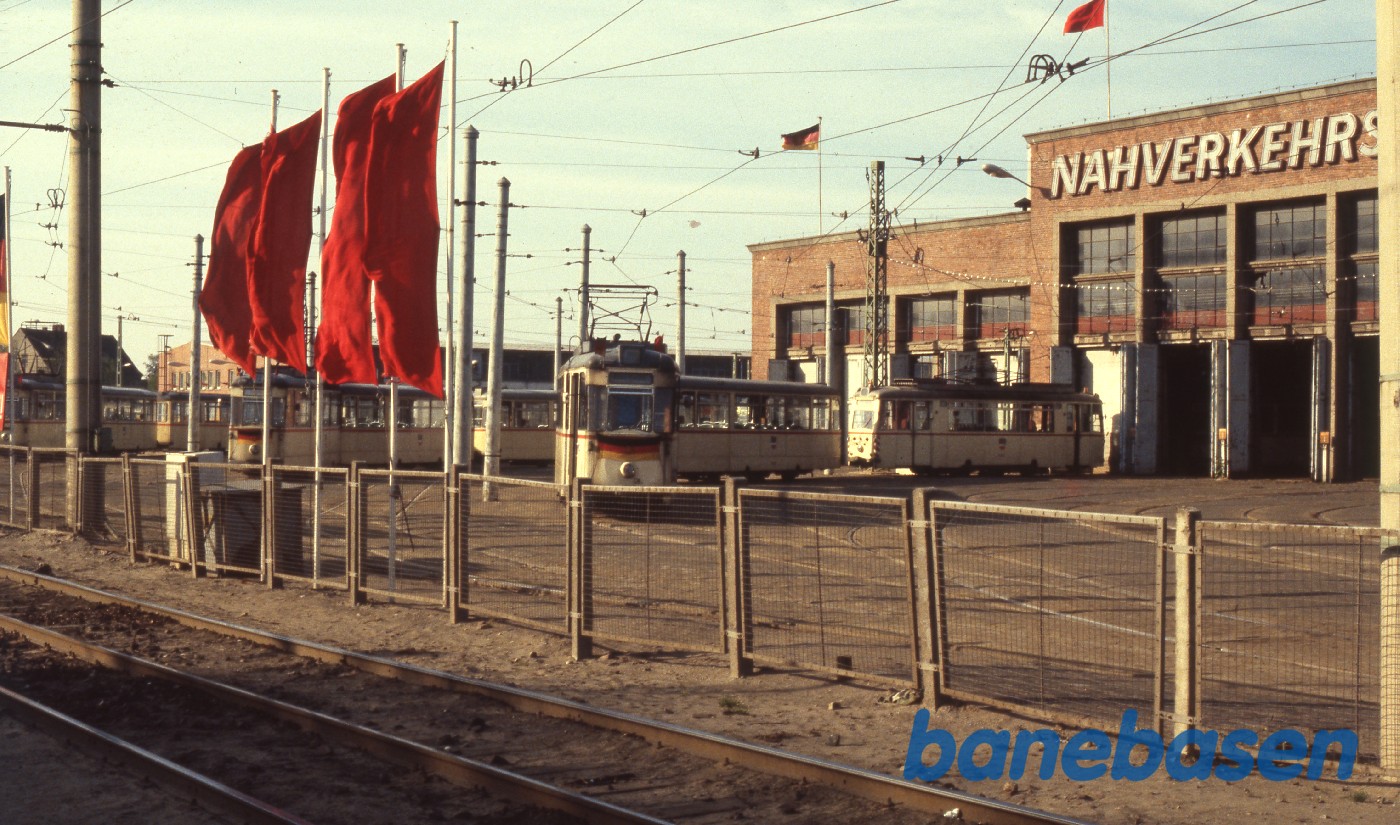 Motiv:Sporvogne holder udenfor remiseanlægget